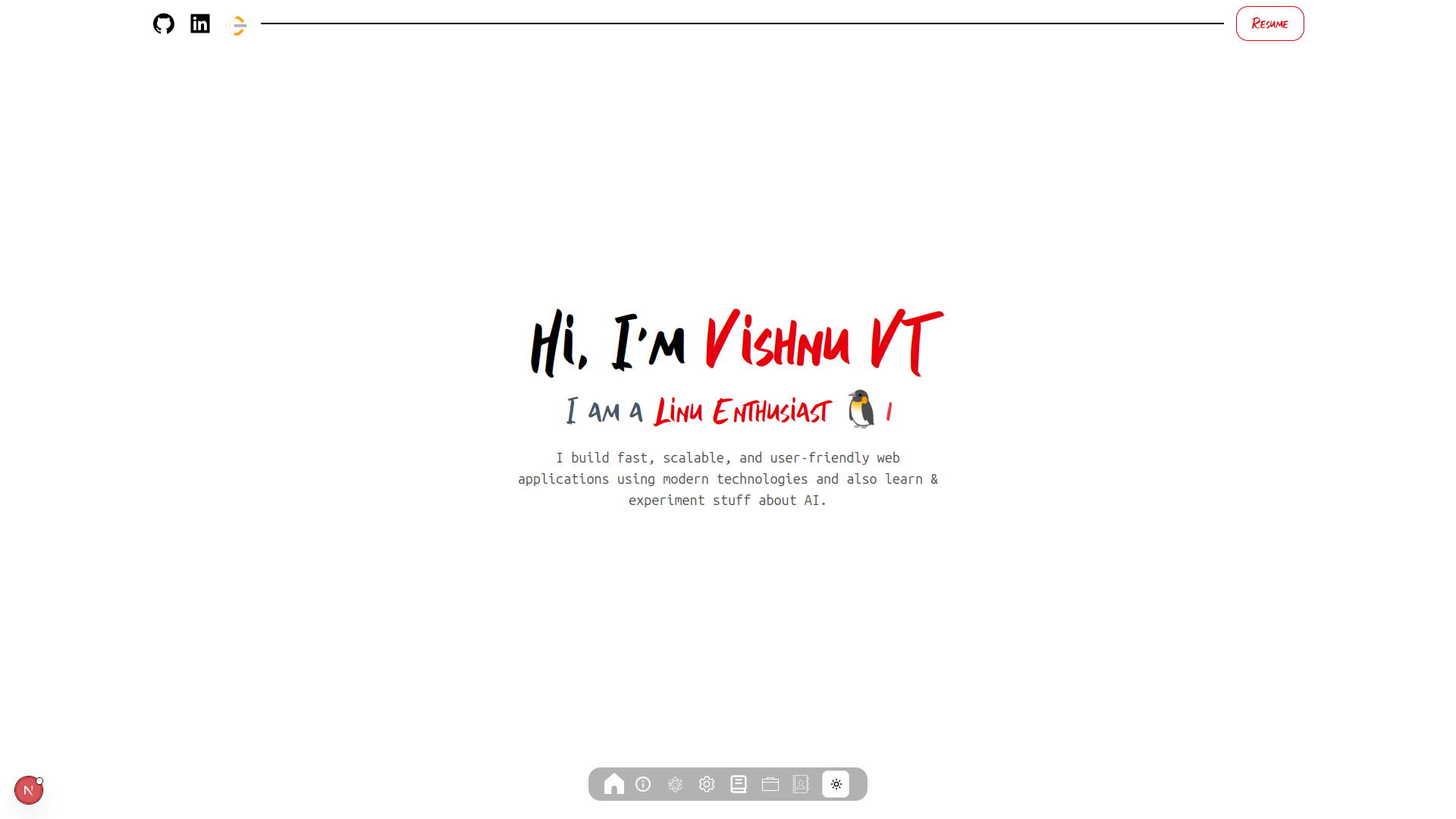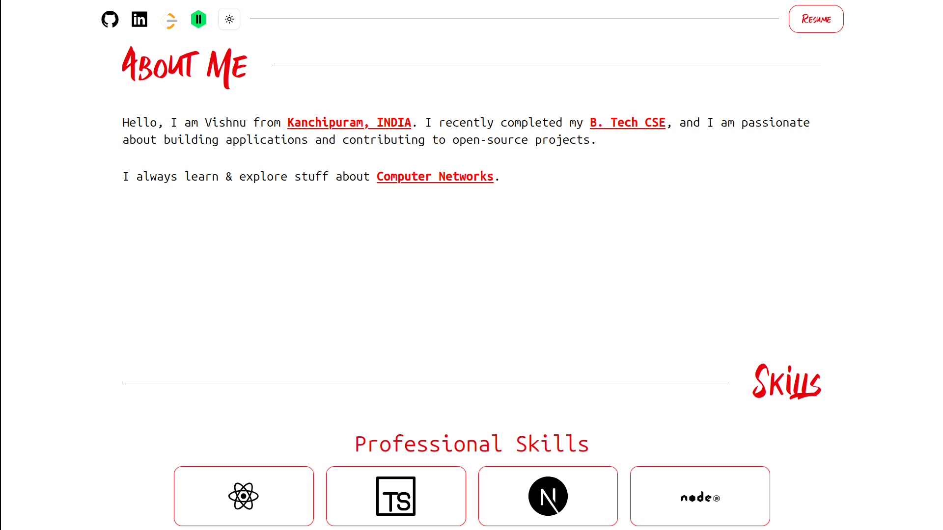Hello, I am Vishnu from Kanchipuram, INDIA. I recently completed my B. Tech CSE, and I am passionate about building applications and contributing to open-source projects.